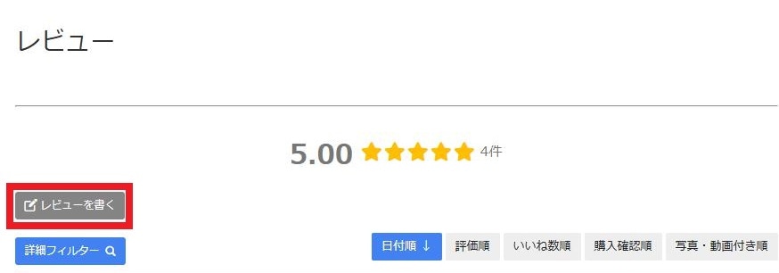 「レビューを書く」ボタン(画像赤枠部分)からご投稿ください。